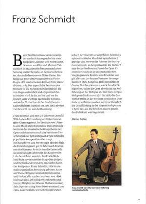 And what of Schmidt himself? Maybe he’s condemned to be in a perpetual state of rediscovery, stuck in limbo on the edge of the repertory. If anything can change that, though, it’s this set: with the Notre Dame Intermezzo thrown in to sweeten the deal, it makes as strong a case for both Schmidt and his symphonies as one could imagine. Essential for the composer’s fans, highly recommended for newcomers. Hugo Shirley